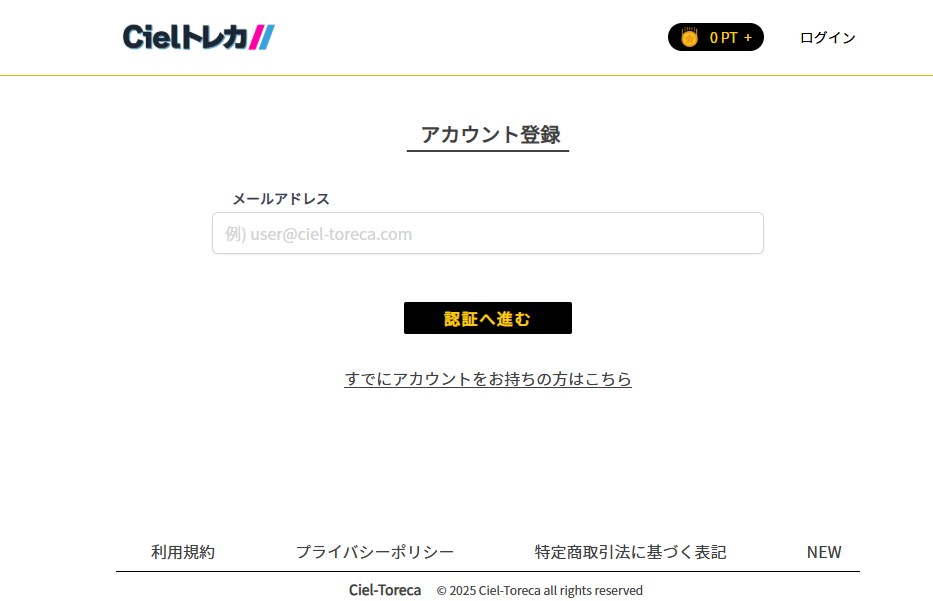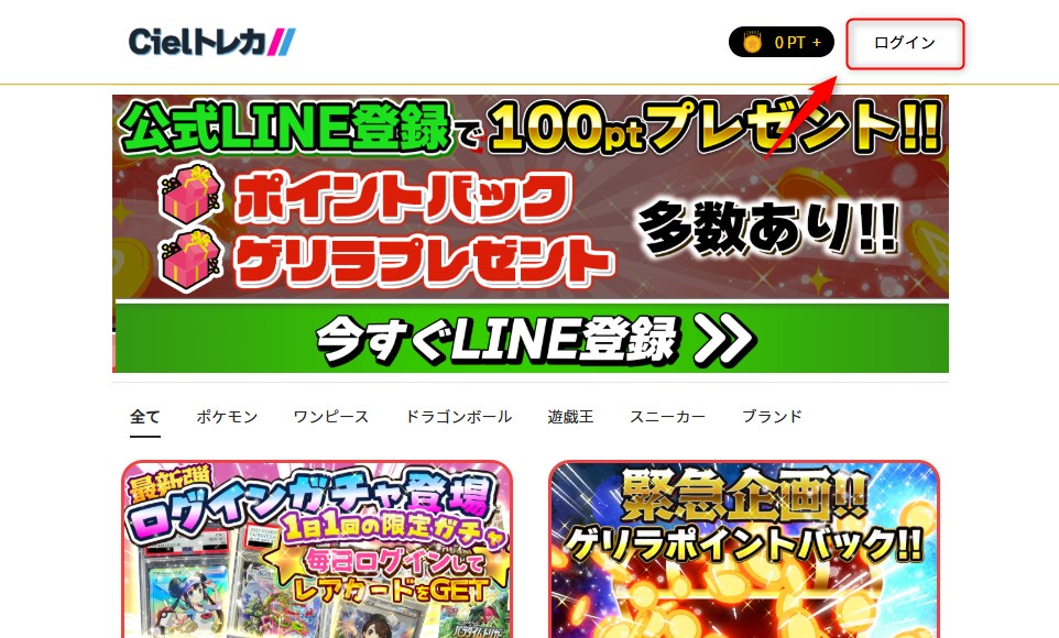 cielトレカ公式サイト →「ログイン」ボタンをタップ。