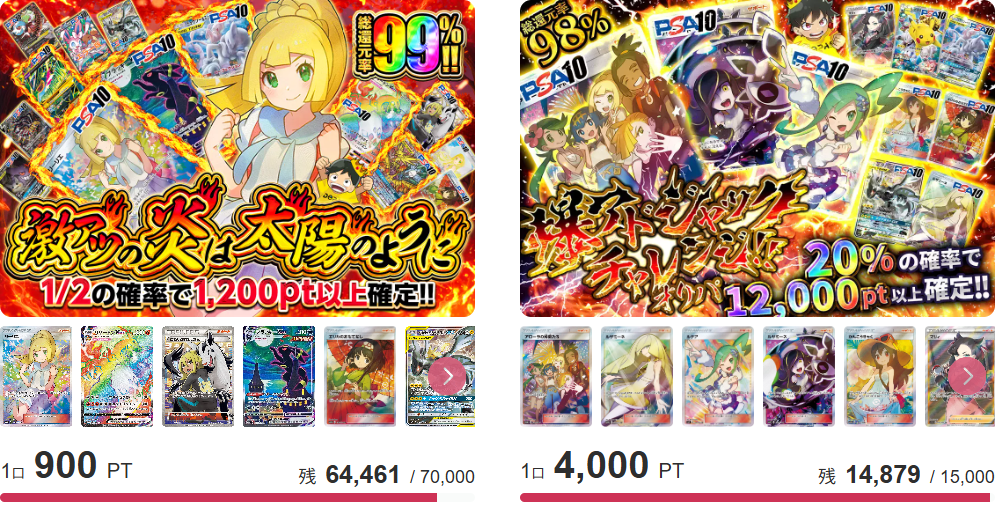 数万口規模のオリパも多く、夢枠狙いの設計が多いため、短期勝負を想定している人には不向きなオリパも存在します。