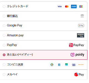 後払いにも対応しているため、柔軟な支払い環境が整っていると言えます。