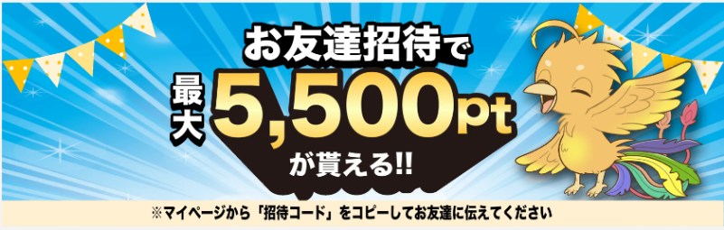 A. 招待コードとは、友達やSNS経由で入力すると、紹介した側にポイントが付与される“紹介制度”です。