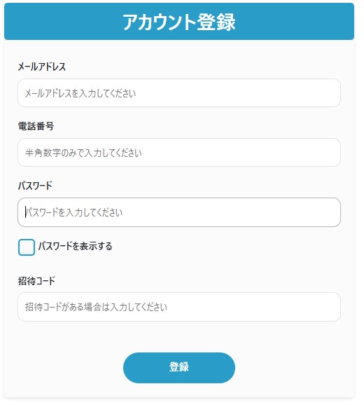 登録後は入力できない可能性が高いので、必ずアカウント作成前に入力するのがおすすめです。