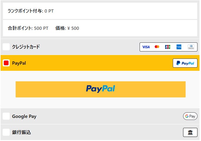 銀行振込、PayPal、クレジットカード、Google pay、Amazon pay
