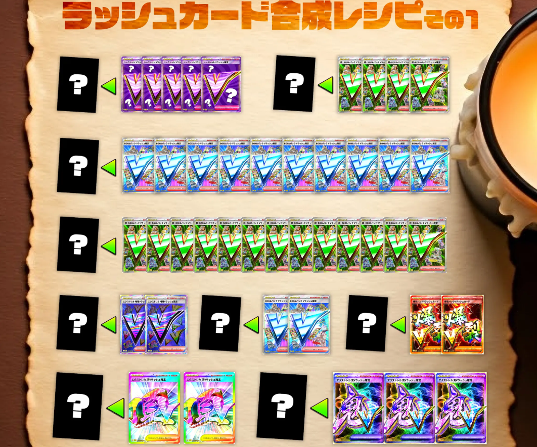 こちらは初期から親しまれているVラッシュカードを中心とした合成レシピ。