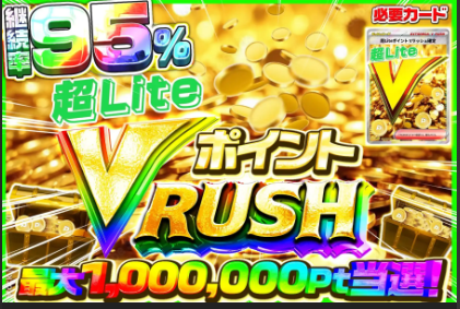 22枚集めると、継続率95%で最低100pt、最高で100万ptが当たる超LiteポイントVラッシュに合成できます。