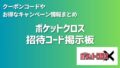 ポケットクロスでは、自身の招待コードを使って友達招待すれば100pもらえます。