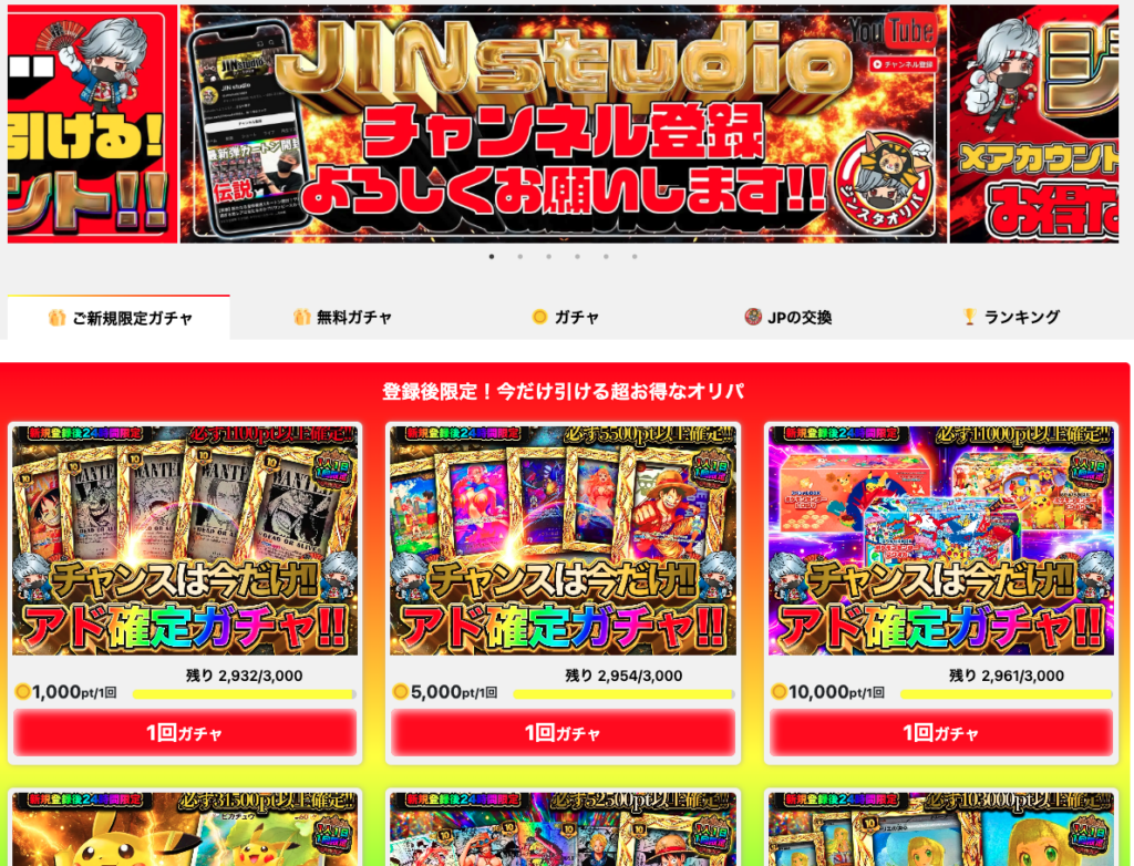 YoutuberのJIN(JIN studio)がYoutubeXでお得なクーポン配布を随時行っています。ガチャを回す前、ポイント購入前にはチェック必須です。