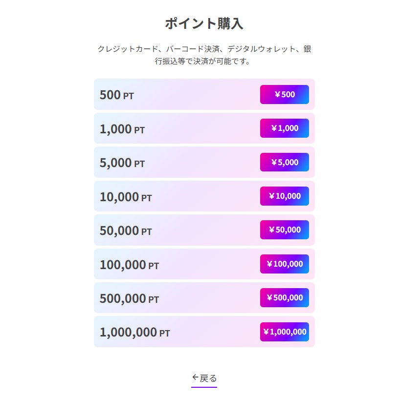 - お友達が合計10,000pt以上購入すると、追加で1500pt!
