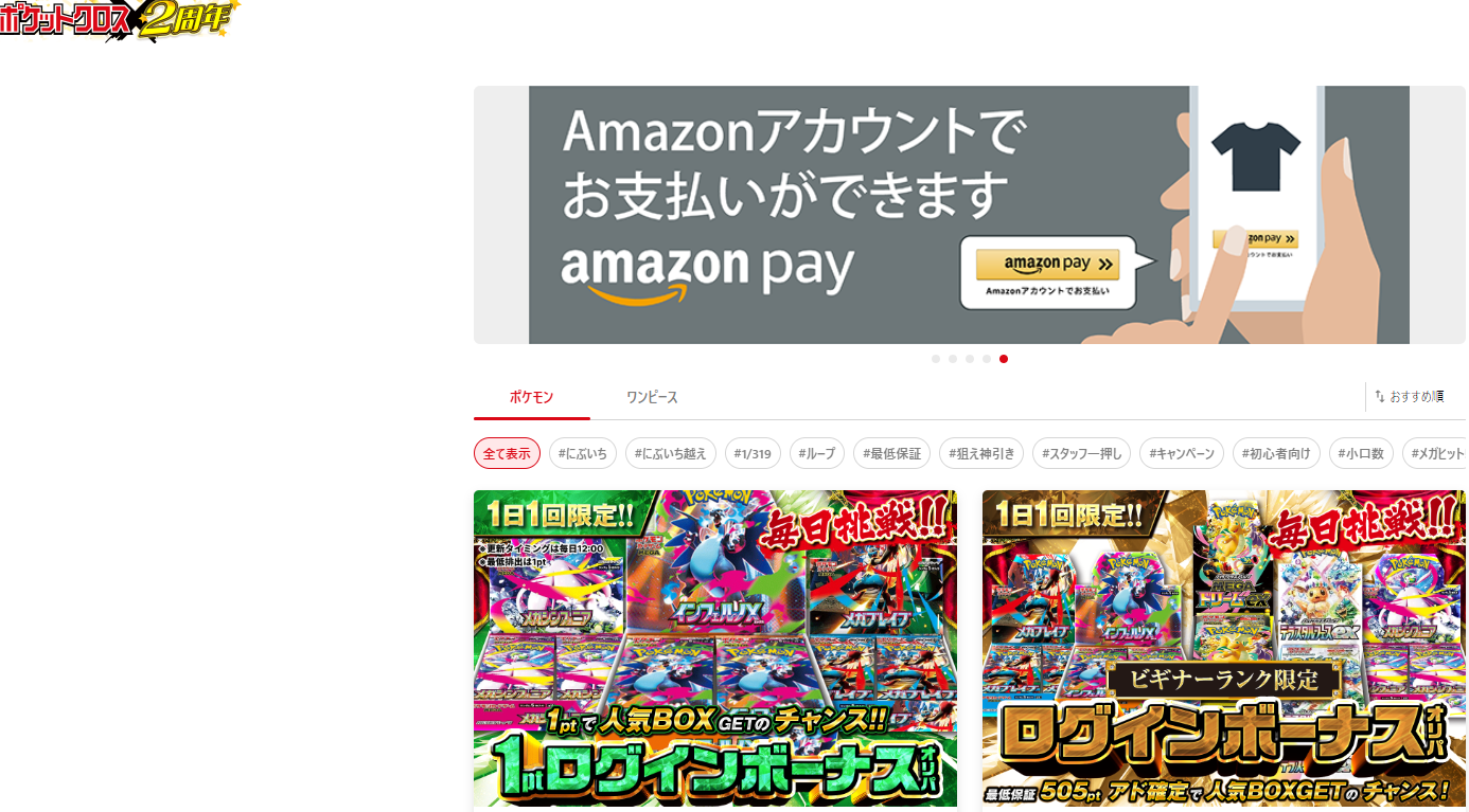 - ポケットクロス|少額ガチャが豊富な入門向けオンラインオリパ