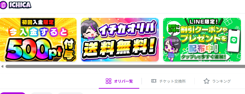 - ICHICA|配布や割引が多いライトユーザー向けオンラインオリパ