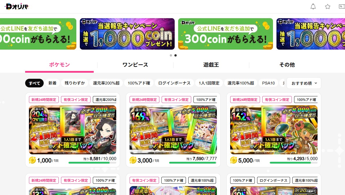 - オリパワン|初心者に優しいバランス型オンラインオリパ