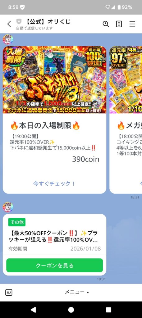 内容はコイン割引やキャンペーンクーポンが中心です。