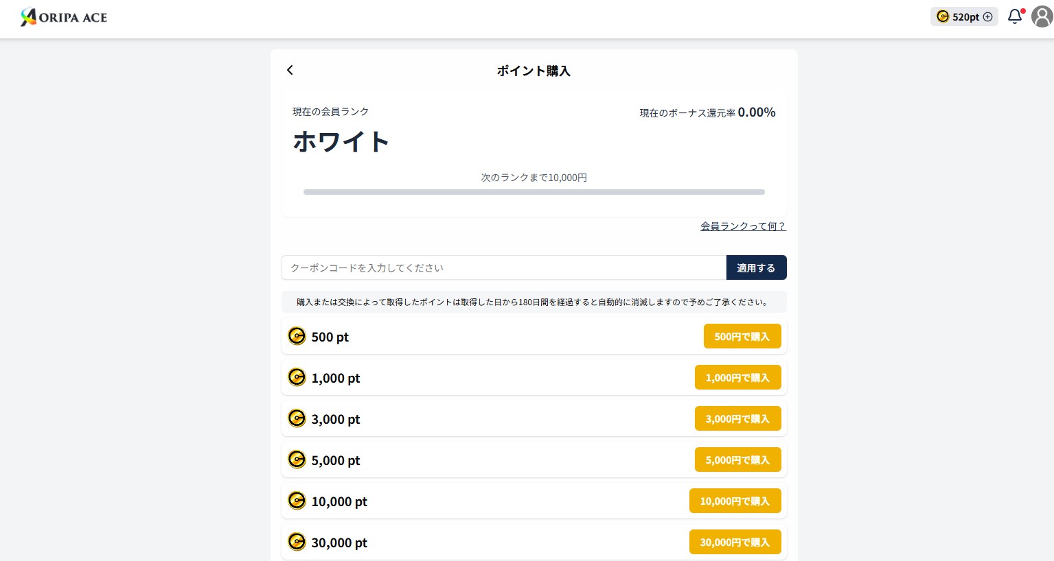 ※購入または交換で取得したポイントは、取得日から180日後に自動消滅します。