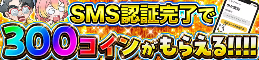 A, 300コイン特典を受け取るためにはSMS認証が必要になります。登録後は早めに完了させましょう。