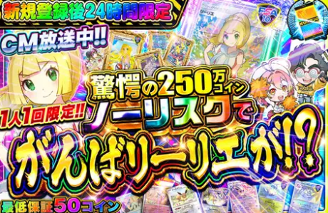 最低保証50コインが設けられているため、こちらは新規登録後の特典を活用すれば完全無料でオリパを引くことができます。