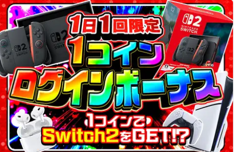 1日1回限定で、たった1コインだけで引けるログインボーナスオリパ。