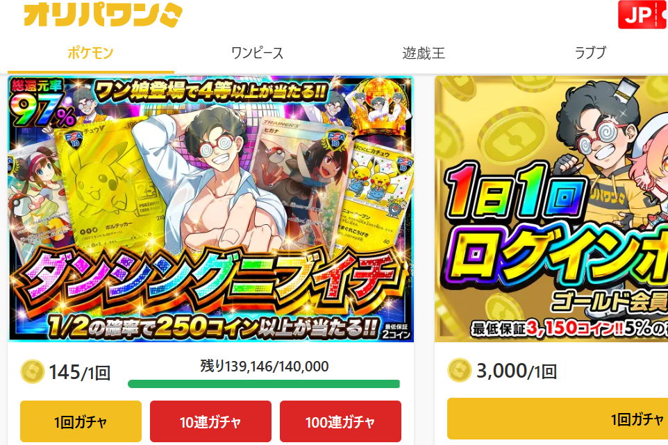 オンラインオリパで人気が高まり続けている「オリパワン」。中でもユーザーの注目を集めているのが、毎月チケットを使って挑戦できる特別ガチャ「ジャックポット」。