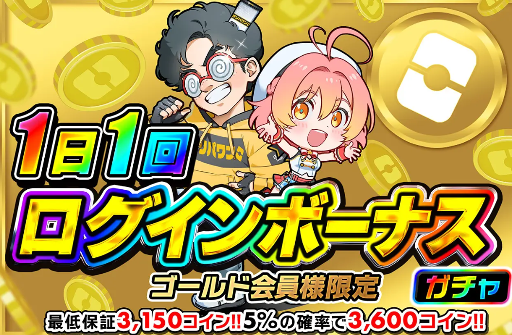 会員によって獲得ポイントは変わってきますが、参考までに、ゴールド会員の場合は最低でも+150コイン、5%の確率で600コインもらえます!