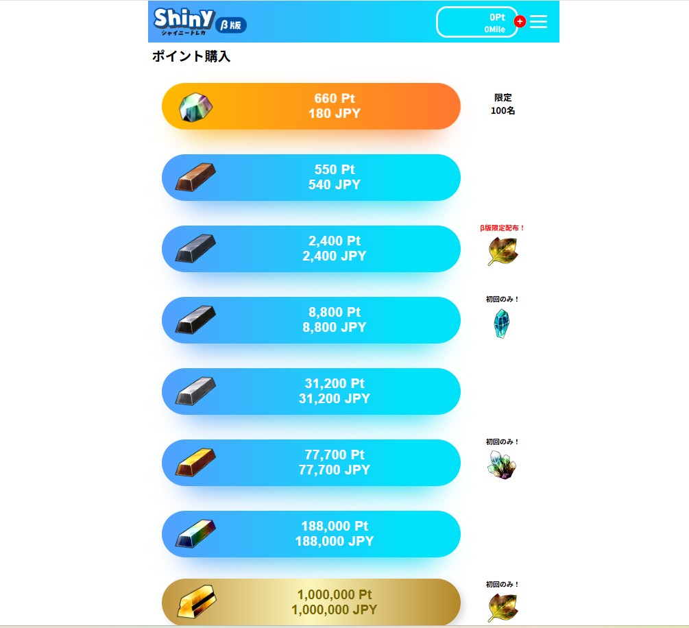 | 2,400 Pt | 2,400円 | β版限定配布 |