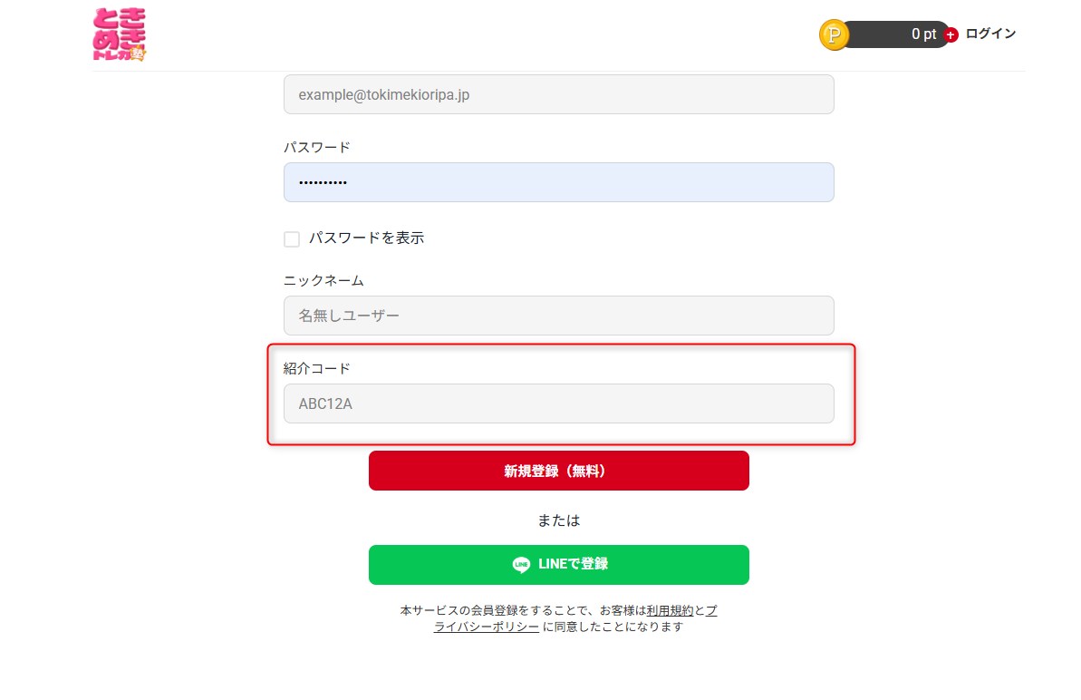 ときめきトレカ塾の招待コードは、新規登録時に入力するだけで100ptもらえる“特典コード”です。