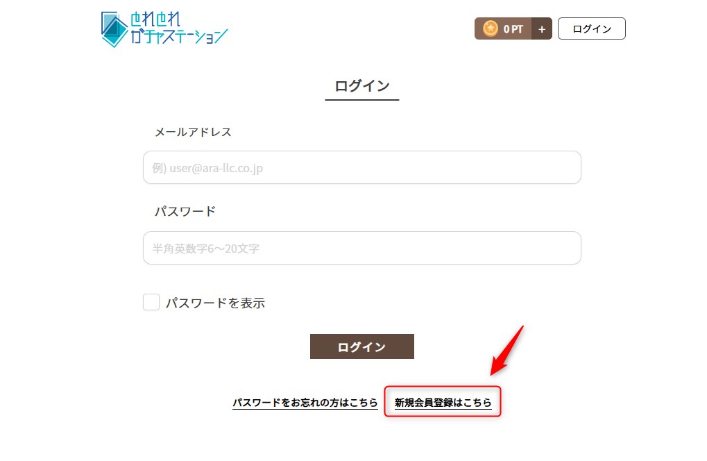 ログイン画面右下「新規会員登録はこちら」をタップ。