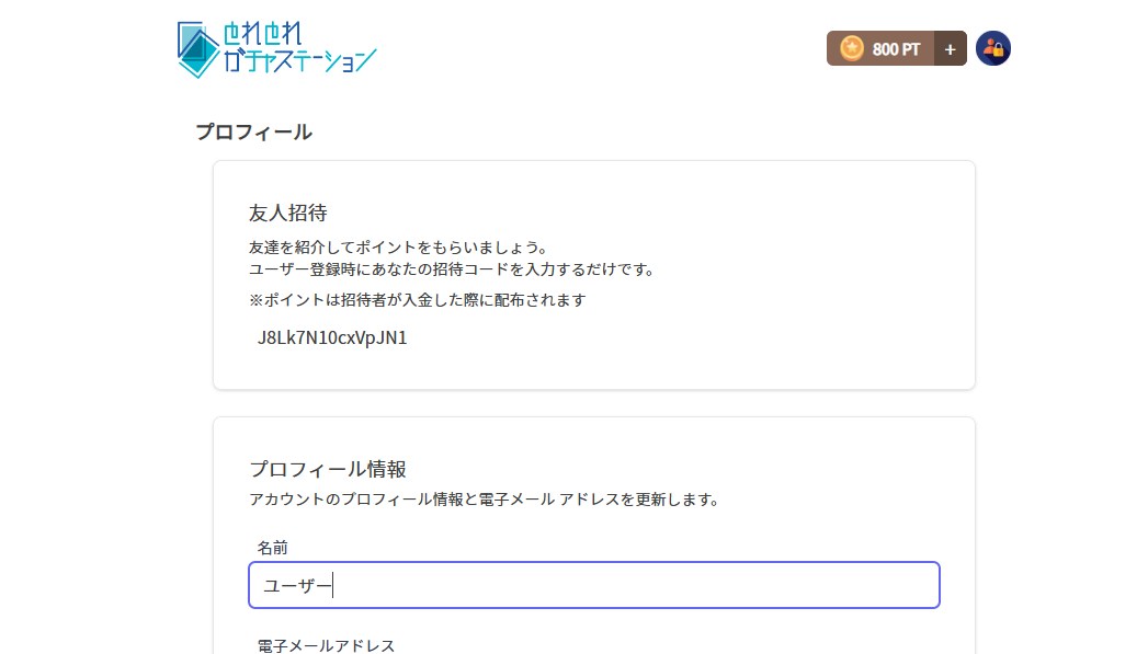 とれとれガチャステーションで自身の招待コードを確認する方法