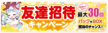 招待できる友達は50人までなので、SNSや掲示板で招待コードを拡散すればほしいパックが最大50パックもらえます。
