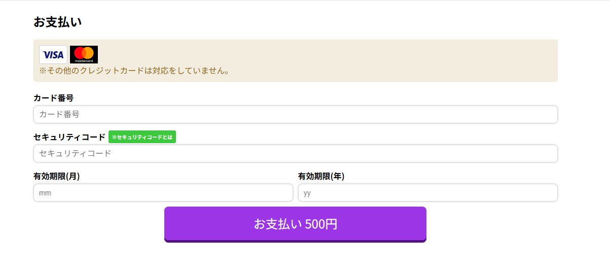 クレジットカード情報を入力し「お支払い」をタップで完了です。
