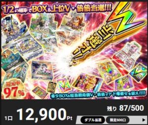 1回:9999ptpt 口数:500 当たり:1/2.25で上位VかPSA10 |