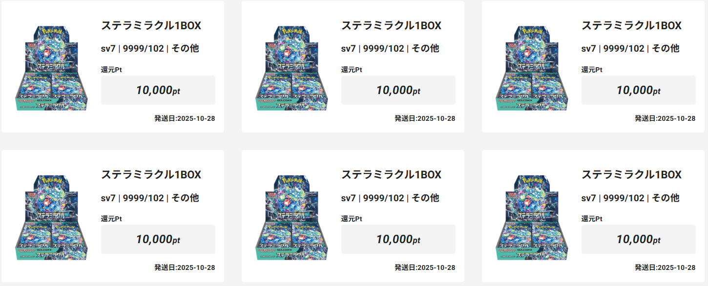 画像外にもありまして、ステラミラクルのBOXが9BOX、シャイニートレジャーが2BOX当選!